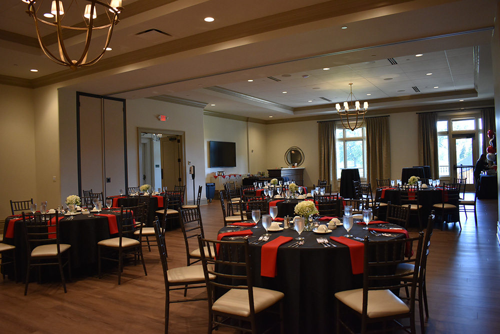 The Country Club Room offers a more intimate atmosphere, perfect for smaller groups of 30 or fewer. Whether for a baby shower, retirement party, or social get-together, you’ll love the beautiful floors, up-to-date A/V equipment, and deck access through the hallway.